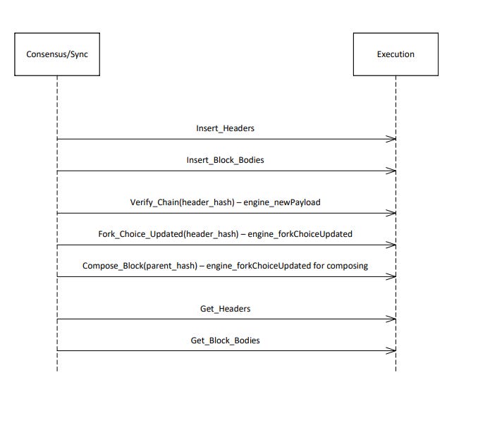 Sorry if it is not highlighted, but Substack does not allow code highlighting. In any case it is just a specialized version of the Engine API for Erigon that uses GRPC instead of Json-Rpc. Note: The Consesus Module will never have ETH1 Data nor will do any execution without querying the Execution Module and Vice versa.